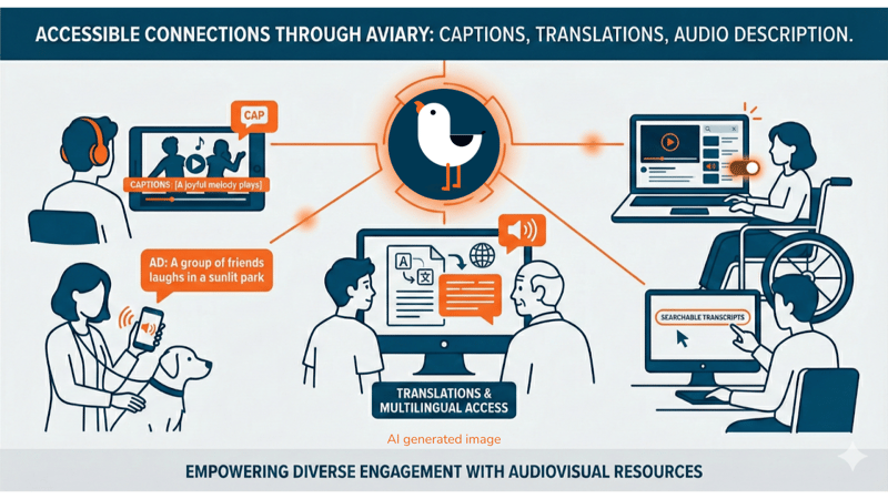 AVP asked me to have these conversations to help inform the future thinking about Aviary, but throughout I was struck by how much of its current functionality addresses the needs people articulated. Aviary is a cloud-based platform specifically designed for publishing searchable audio and video content. What makes Aviary worth considering in the context of these conversations is its built-in integration with multiple AI services for automated transcription, translation, captioning, audio description, and metadata generation to enhance accessibility.